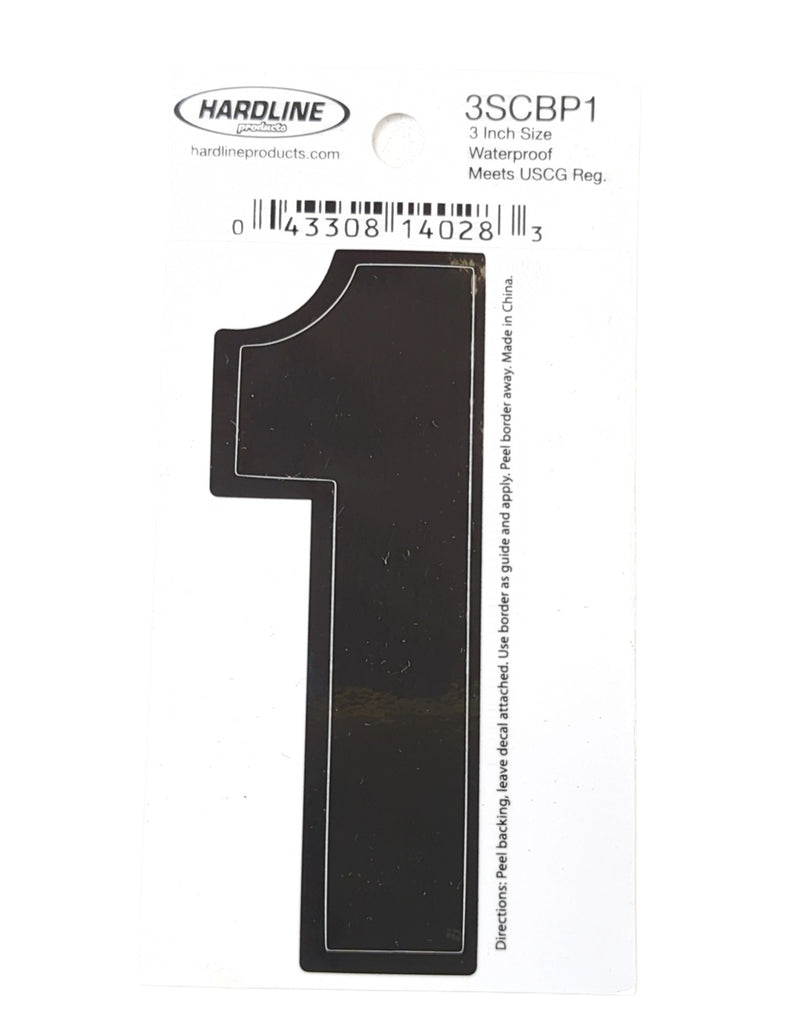 - Hardline Products 3SCBP1 Boat Marine Grade 3" Black #1 Registration Number Each