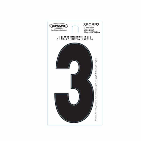 - Hardline Products 3SCBP3 Boat Marine Grade 3" Black #3 Registration Number Each