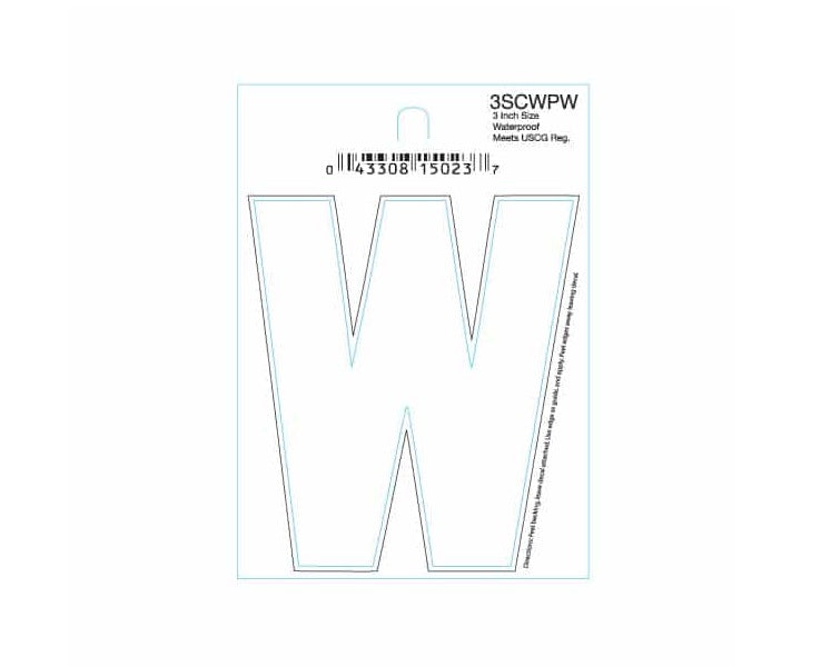 • Hardline Products 3SCWPW Boat Marine Grade 3" White Letter W Registration Each