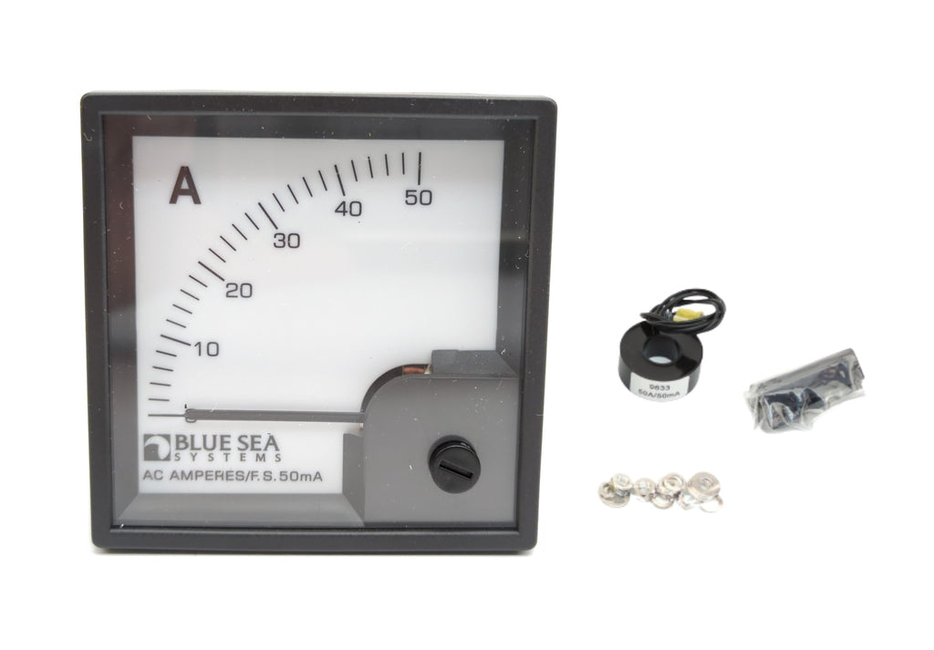 Blue Sea System 1058 Standard European 72mm 12V/24V DC 0-50 Amp AC Analog DIN Ammeter with Coil
