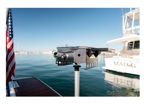 All handles and controls are made from durable, heat-resistant thermoplastic. It includes a cradle to hold a 1-lb disposable propane cylinder at a 35 deg. angle, for the most efficient use of the propane. Use as a stove out of the box, placing any pot or saute pan on the cooking grate. Or add any of the optional toppers to the grill, make pizza, or griddle. When using these toppers, the Firebox collects any excess grease in the back through a unique grease containment system, ensuring your boat remains clean.